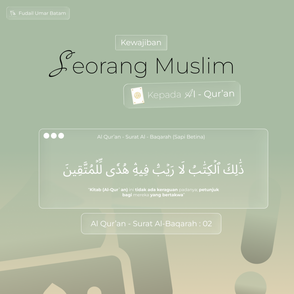 So this is an aqidah project of mine, titled “the Duty of a Muslim to the Al Qur’an”. so, i made a poster about that. So there’s a verse or an ayah of the Qur’an inside the poster, and for the verse or the ayah, i chose the Second Verse of Al-Baqarah, and also the translation of the verse in Indonesian, since this poster is directed to the Indonesian Muslims. But it’s still usable for international dakwah. And i made it with a similar theme to that of the fiqh mindmapping i made, so i used the glass effect, to make it look nice without making it too flashy or too distracting, and i used a special font for the arabic ayah or verse.