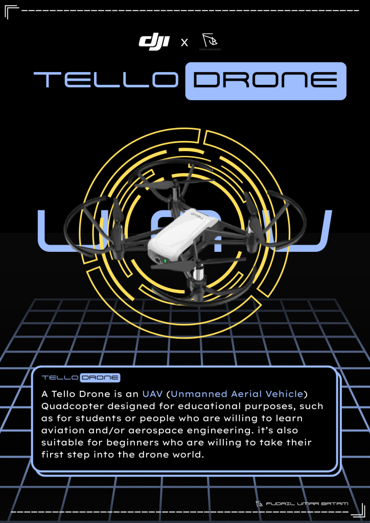 and this is the Tello poster. I tried the Synthwave / Vaporwave / Retrowave grid theme, and I also went on to put U A V on the back as I know what it means and I mean.. I’m kinda an aviation geek so I kinda know what a drone is and how it works, and I kinda got inspired from Kamen Rider Drive Type Next, and since I liked the color scheme I decided to apply it to my (probably) favorite school project poster